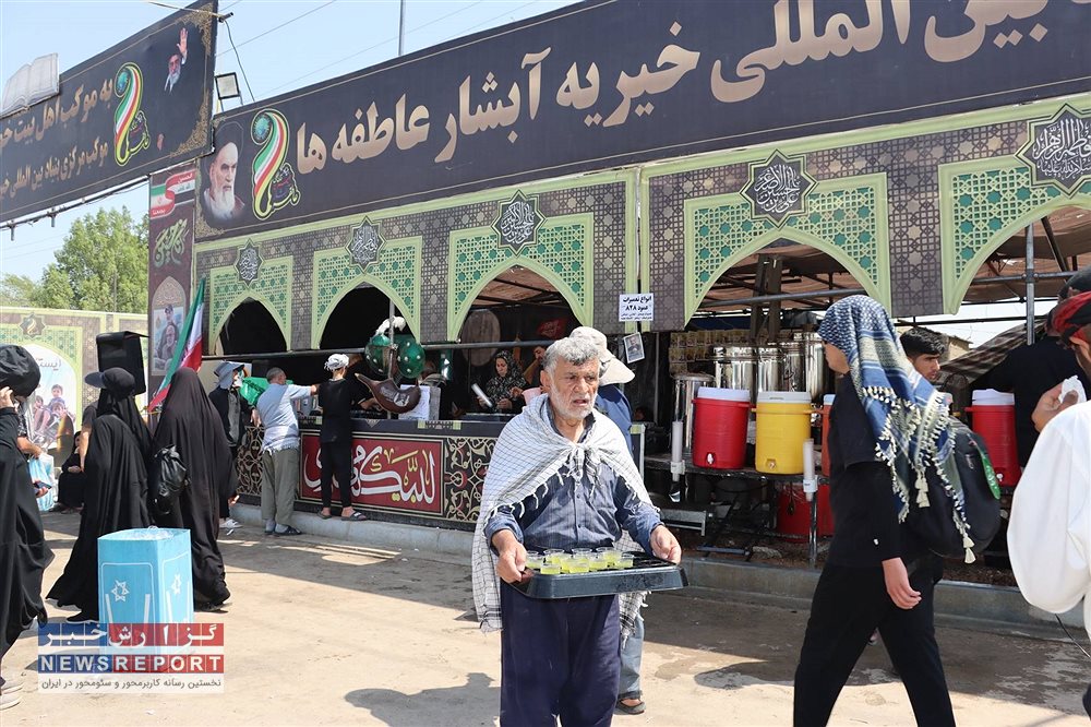 خدمت رسان موکب آبشار عاطفهها در مسیر اربعین 1404 از پنجره دوربین (17 مردادماه)